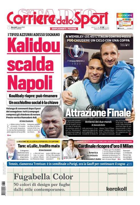 Il Corriere dello Sport, nell'edizione campana, apre parlando del difensore azzurro Kalidou Koulibaly: "Kalidou scalda Napoli. Koulibaly riapre: può rimanere. Un occhiolino social è la chiave. I tifosi azzurri adesso sognano. Valanga di commenti dopo il post del senegalese: tutti (compagni compresi) gli chiedono di restare. Presto vertice Ramadani-ADL".