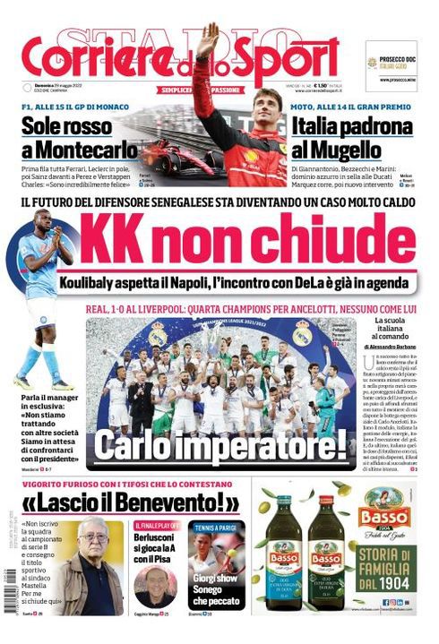 Il Corriere dello Sport, nell'edizione campana, apre con "KK non chiude". Il futuro del difensore senegalese sta diventando un caso molto caldo. Koulibaly aspetta il Napoli, l'incontro con DeLa è già in agenda. Parla il manager in esclusiva: "Non stiamo trattando con altre società. Siamo in attesa di confrontarci con il presidente".