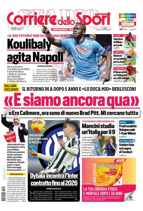 Il Corriere dello Sport, edizione Campania, ha dedicato spazio in prima pagina a Kalidou Koulibaly: "Koulibaly agita Napoli. "Il mio futuro? Non so dove giocherò". Ha il contratto in scadenza nel 2023 e avverte DeLa: "Vado in vacanza, poi vedremo cosa succederà", l'ombra del Barca".