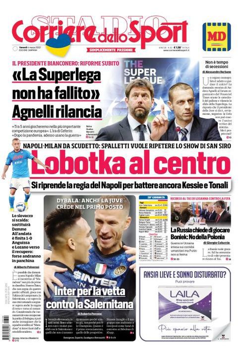 Il Corriere dello Sport, nell'edizione campana, apre con il ritorno del centrocampista slovacco: "Lobotka al centro". Si riprende la regia del Napoli per battere ancora Kessie e Tonali. Napoli-Milan da scudetto: Spalletti vuole ripetere lo show di San Siro.