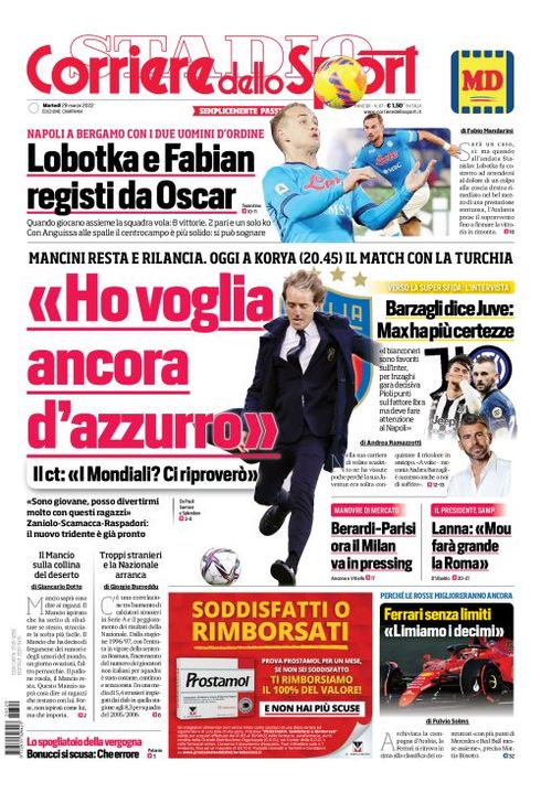 Il Corriere dello Sport, nell'edizione campana, apre con "Lobotka e Fabian registi da Oscar". Il Napoli a Bergamo con i due uomini d'ordine. Quando giocano assieme la squadra vola: 8 vittorie, 2 pari e un solo ko. Con Anguissa alle spalle il centrocampo è più solido: si può sognare.