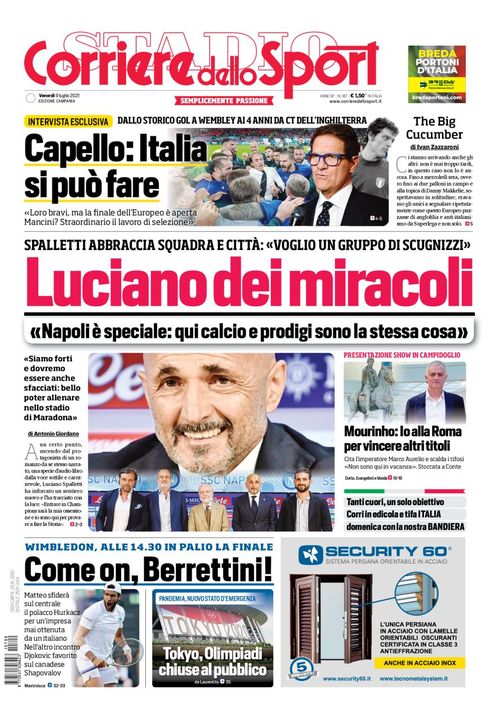 "Luciano dei miracoli", titola l'edizione campana del Corriere dello Sport, aggiungendo: "Spalletti: "Voglio un gruppo di scugnizzi".