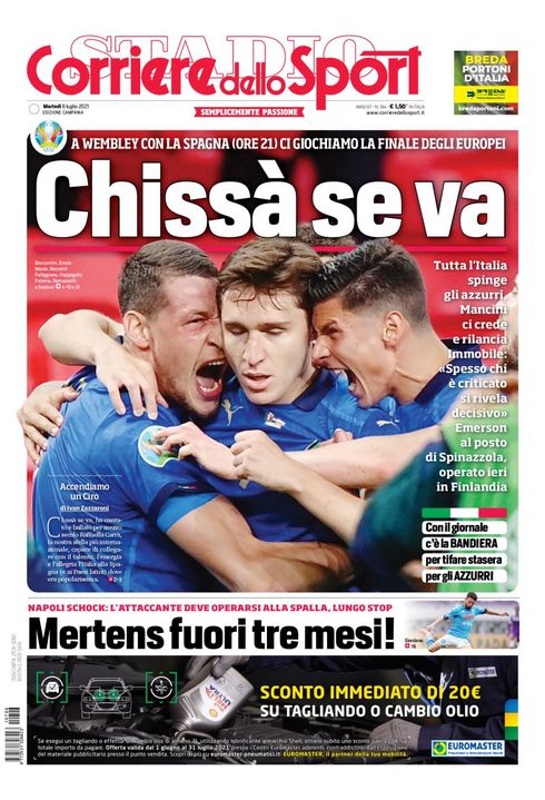 "Mertens fuori tre mesi!", titola in basso l'edizione campana del Corriere dello Sport.