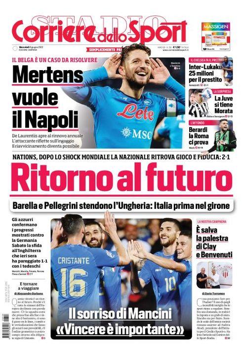 Il Corriere dello Sport, nell'edizione campana, apre con la trattativa per il rinnovo del contratto di Mertens con il Napoli: "Mertens vuole il Napoli. Il belga è un caso da risolvere. De Laurentiis apre al rinnovo annuale. L'attaccante riflette sull'ingaggio. Il riavvicinamento diventa possibile".