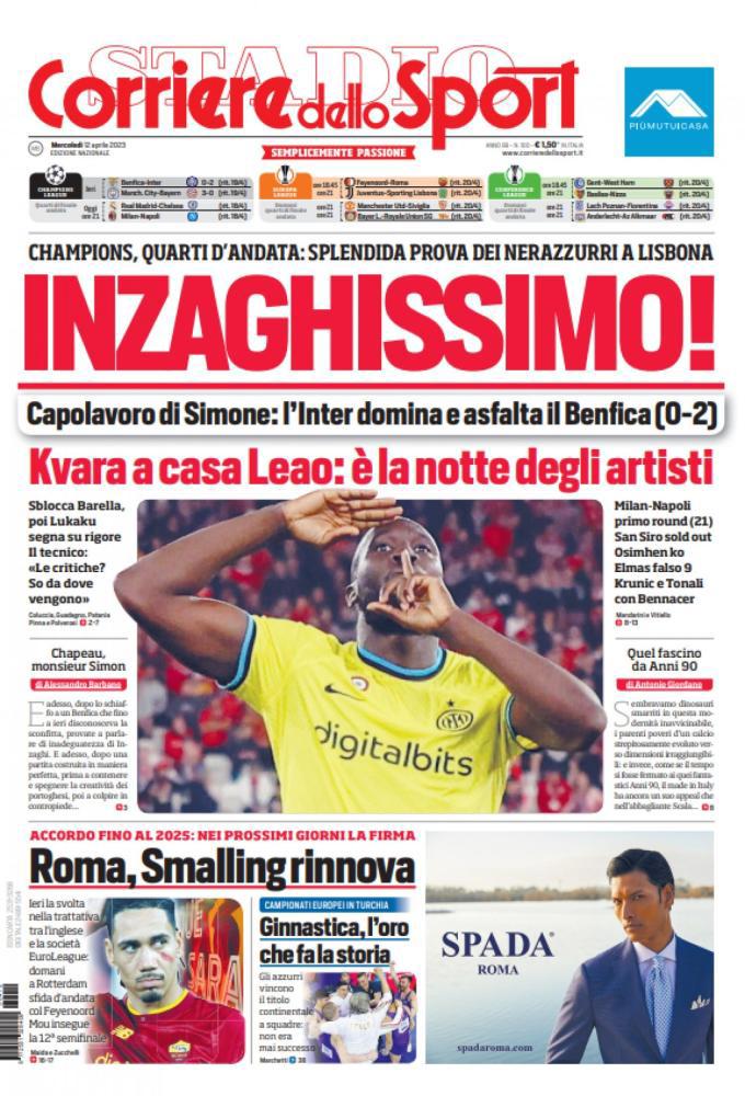 Il Corriere dello Sport, nell'edizione campana, apre con la sfida di Champions League tra Milan e Napoli a San Siro: "Kvara a casa Leao: è la notte degli artisti. Milan-Napoli, primo round (21). San Siro sold out, Osimhen ko. Elmas falso 9, Krunic e Tonali con Bennacer".
