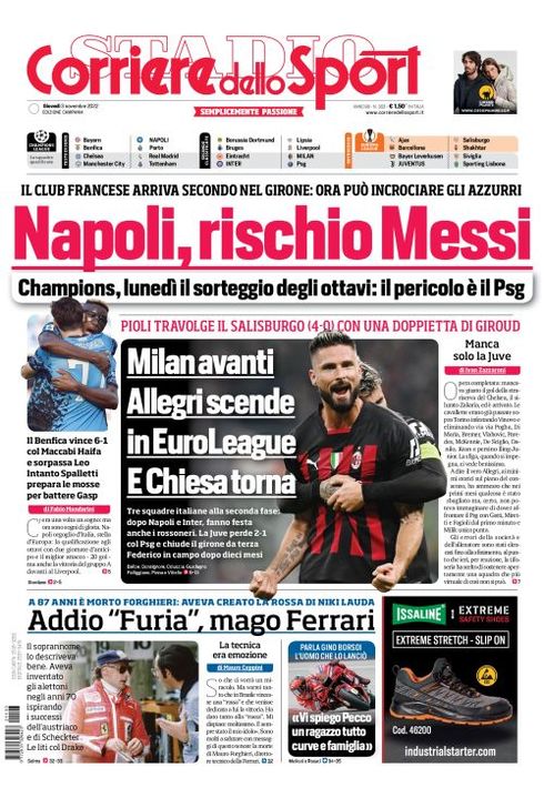 Il Corriere dello Sport, edizione Campania, dedica spazio al Napoli e al sorteggio degli ottavi di finale: "Napoli, rischio Messi. Il club francese arriva secondo nel girone: ora può incrociare gli azzurri. Champions, lunedì il sorteggio degli ottavi: il pericolo è il PSG".