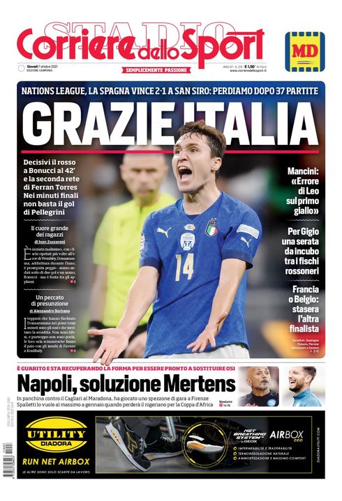 "Napoli, soluzione Mertens", titola così in prima pagina il Corriere dello Sport nella sua edizione Campania. "E' guarito e sta recuperando la forma per essere pronto a sostituire Osi. In panchina contro il Cagliari al Maradona, ha giocato uno spezzone di gara a Firenze. Spalletti lo vuole al massimo a gennaio quando perderà il nigeriano per la Coppa d'Africa".
