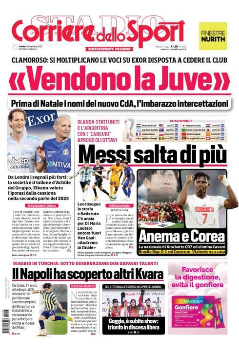 Il Corriere dello Sport, nell'edizione campana, apre con il viaggio in Turchia del Napoli e con l'interesse da parte degli azzurri per i giovani Guler e Kadioglu del Fenerbahce: "Il Napoli ha scoperto altri Kvara. Viaggio in Turchia: sotto osservazione due giovani talenti. Da Guler (17 anni) a Kadioglu (23 anni), missione per bloccare i centricampisti del Fenerbahce. Il club di DeLa sta lavorando per anticipare anche le mosse del Milan".