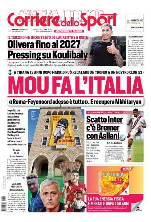 Il Corriere dello Sport, nell'edizione campana, apre con l'arrivo in azzurro del terzino Mathias Olivera e con la trattativa tra il Napoli e Koulibaly per il rinnovo del difensore senegalese: "Olivera fino al 2027, pressing su Koulibaly. Il terzino ha incontrato De Laurentiis a Roma. L'uruguaiano ha svolto le visite mediche. Nodo rinnovo per Koulibaly. Ospina prende tempo e aspetta il Real Madrid. Spunta l'idea Gollini".