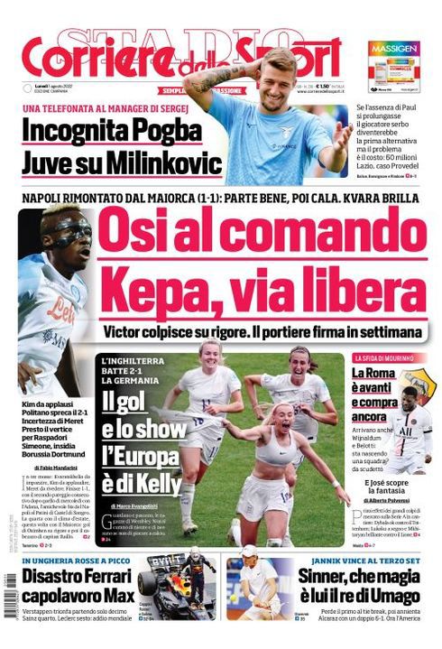 Il Corriere dello Sport, edizione Campania, dedica spazio in prima pagina al Napoli: "Osi al comando. Kepa, via libera. Victor colpisce su rigore. Il portiere firma in settimana. Napoli rimontato dal Mallorca (1-1): parte bene, poi cala. Kvara brilla".