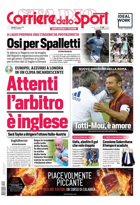 La prima pagina dell'edizione Campania del Corriere dello Sport titola così: "Osi per Spalletti", poi in basso: "Si allena in Nigeria con la maglia del Napoli ed organizza una partita con gli amici: Osimhen si scalda per il ritiro del 12 luglio a Dimaro".