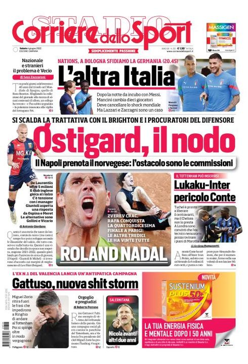Il Corriere dello Sport, nell'edizione campana, apre con l'interesse da parte del Napoli per Ostigard, difensore norvegese ormai ad un passo dagli azzurri: "Ostigard, il nodo. Si scalda la trattativa con il Brighton e i procuratori del difensore. Il Napoli prenota il norvegese: l'ostacolo sono le commissioni. De Laurentiis offre 5 milioni, il club inglese gioca al rialzo. C'è tensione con i manager. Giuntoli aspetta una risposta da Ospina e Meret. Le alternative sono Gollini e Vicario".