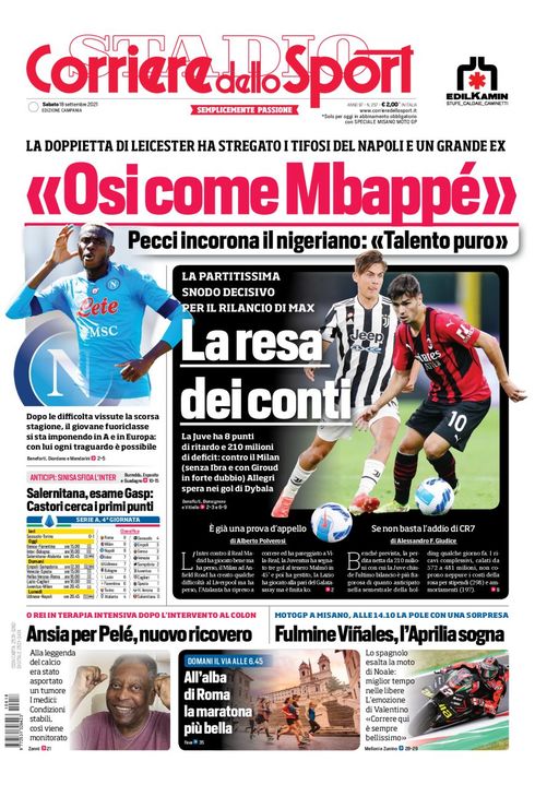 Il Corriere dello Sport, nell'edizione Campania, apre in prima pagina con le dichiarazioni di Pecci: “Osimhen come Mbappè, talento puro".