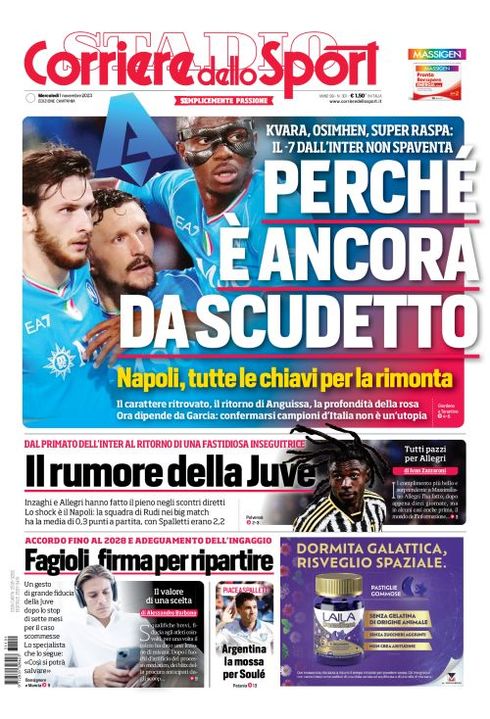 Il Corriere dello Sport, nell'edizione campana, apre parlando del Napoli: "Perchè è ancora da scudetto. Kvara, Osimhen, super Raspa: il -7 dall'Inter non spaventa. Napoli, tutte le chiavi della rimonta. Il carattere ritrovato, il ritorno di Anguissa, la profondità della rosa. Ora dipende da Garcia: confermarsi campioni d'Italia non è un'utopia".