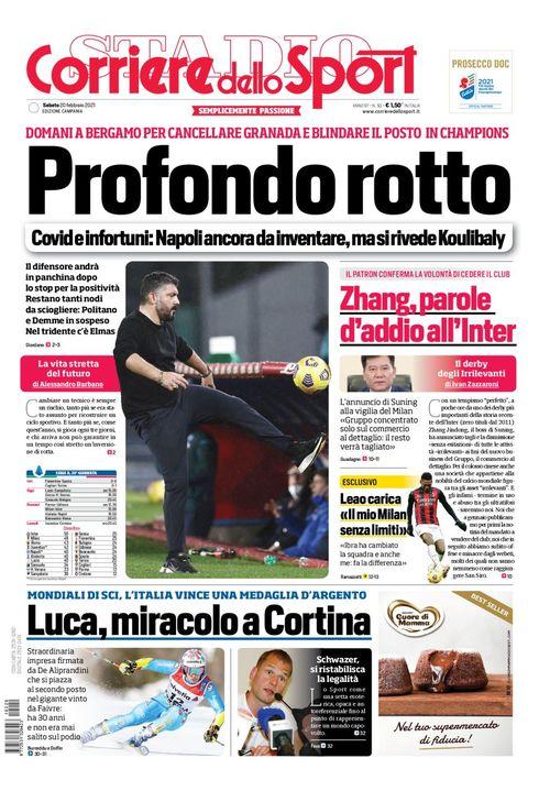 "Profondo Rotto. Covid e infortuni: Napoli ancora da inventare, ma si rivede Koulibaly questo è lo spazio dedicato al Napoli sulla prima pagina del Corriere dello Sport, edizione Campania.