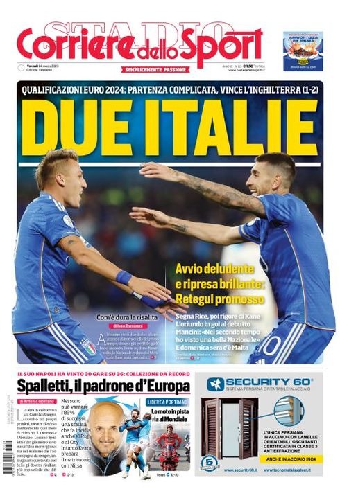 Il Corriere dello Sport, nell'edizione campana, apre con "Spalletti, il padrone d'Europa". Il suo Napoli ha vinto 30 gare su 36: collezione da record. Nessuno può vantare l'83% di successi: una scalata che fa invidia anche al PSG e al City. Intanto Kvara prepara il matrimonio con Nitsa.