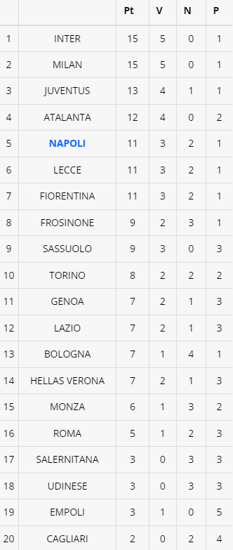 Con la vittoria del Genoa sulla Roma al Ferraris, si chiude la sesta giornata di Serie A. La squadra di Gilardino aggancia a quota 7 punti la Lazio, il Bologna e il Verona. I giallorossi restano fermi a quota 5 punti. Di seguito la classifica dopo la sesta giornata.