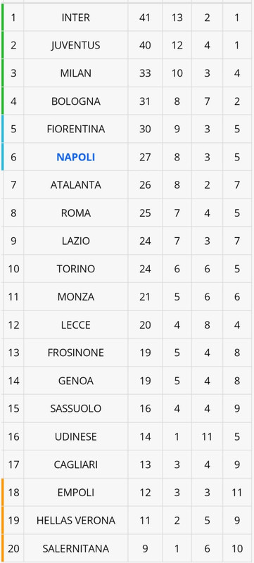Il Bologna, grazie al successo nel finale contro l'Atalanta, prosegue la sua marcia trionfale e sale a quota 3 punti portandosi al quarto posto a -2 dal Milan. I bergamaschi, invece, restano fermi a quota 26 punti ed in settima posizione. Nell'altro match del pomeriggio il Torino non va oltre il pari in casa con l'Udinese: in virtù di questo risultato i granata salgono a quota 24 punti agganciando la Lazio al nono posto, mentre i friulani si portano a quota 14 punti salendo a +2 sulla zona retrocessione. Ecco la classifica provvisoria della Serie A: