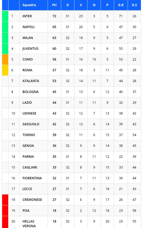 SERIE A - La classifica provvisoria: il Genoa scavalca il Parma e vola a +9 sulla zona retrocessione
