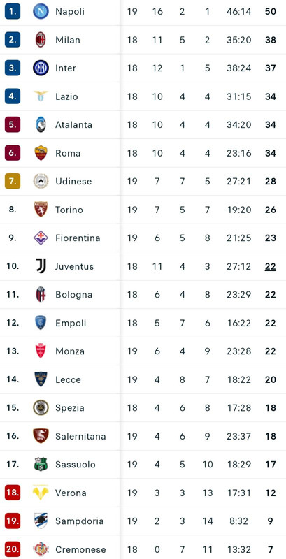 Un punto a testa per Sassuolo e Monza nel match delle 15:00. La squadra di Palladino aggancia a quota 22 punti Empoli, Bologna e Juventus. Dionisi va a +5 dalla zona retrocessione. Di seguito la classifica aggiornata.