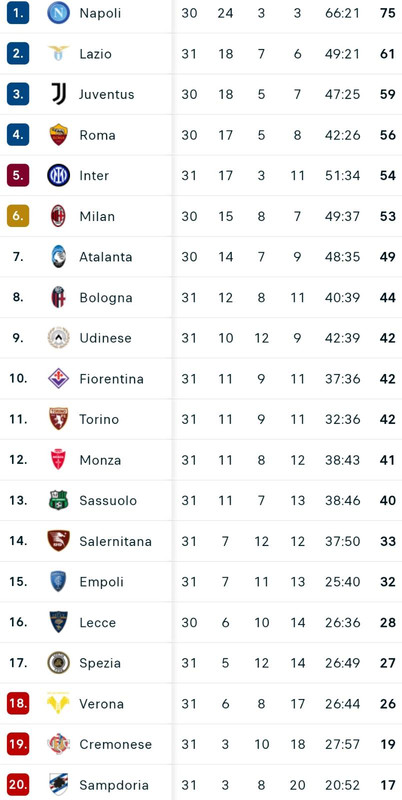 Il Monza vince in rimonta contro la Fiorentina e supera il Sassuolo, portandosi a quota 41 punti. Sorride anche l'Udinese, che batte 3-0 la Cremonese (sempre più a rischio retrocessione) e aggancia proprio la Viola e il Torino a quota 42 punti. Di seguito la classifica provvisoria.