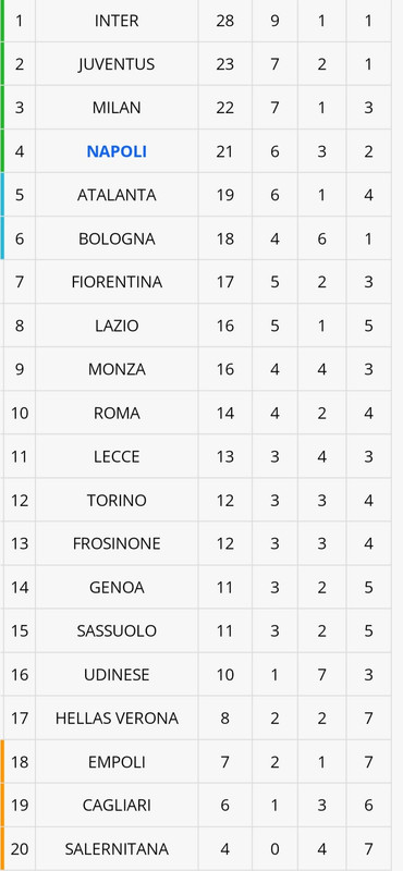 Il Monza, grazie alla vittoria sul campo dell'Hellas Verona, sale a quota 16 punti e raggiunge così la Lazio all'ottavo posto. I gialloblù, invece, restano fermi a quota 8 punti, soltanto a +1 sulla zona retrocessione. Ecco la classifica provvisoria della Serie A: