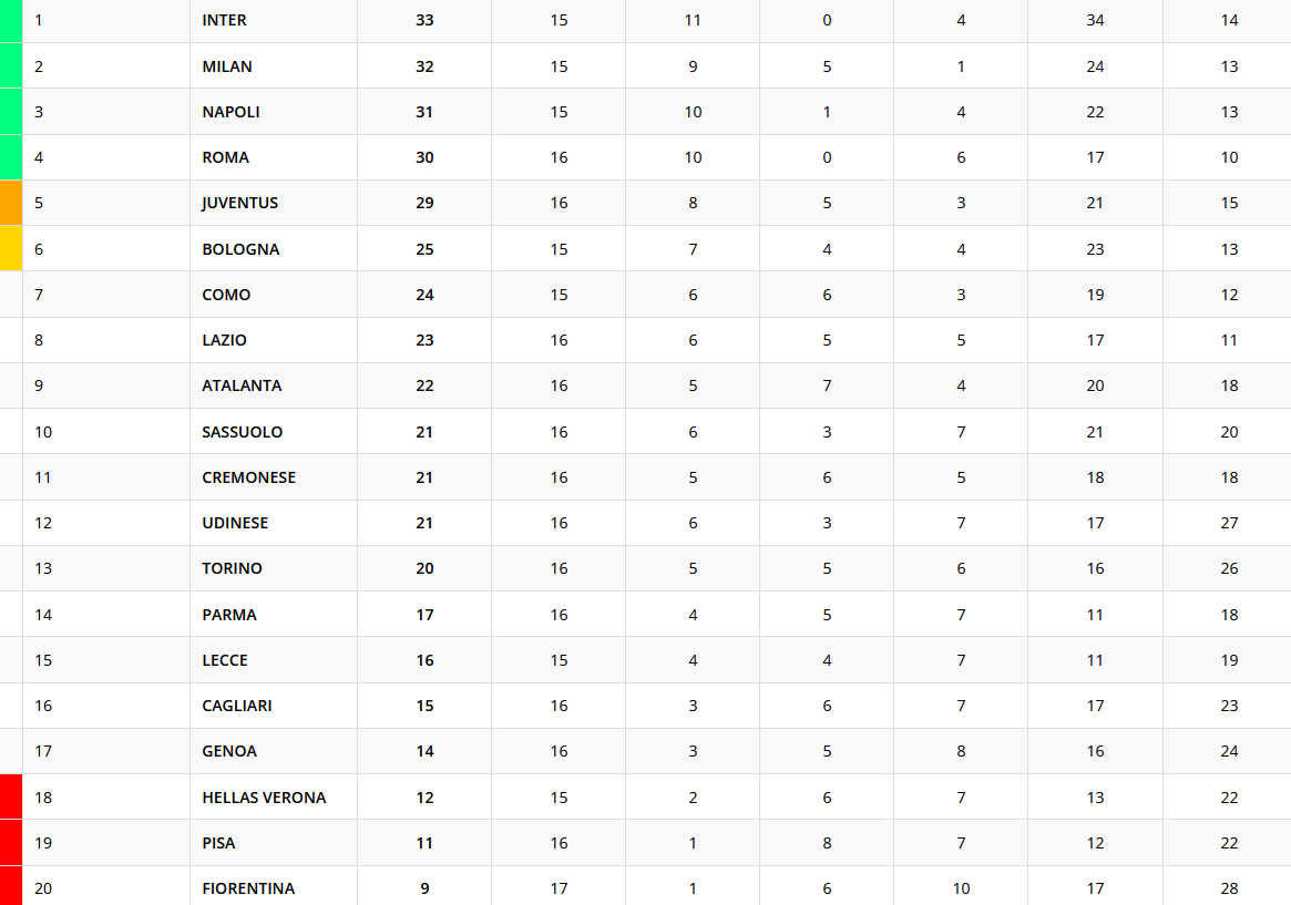 SERIE A - La classifica provvisoria: il Parma supera il Lecce, Fiorentina ultima