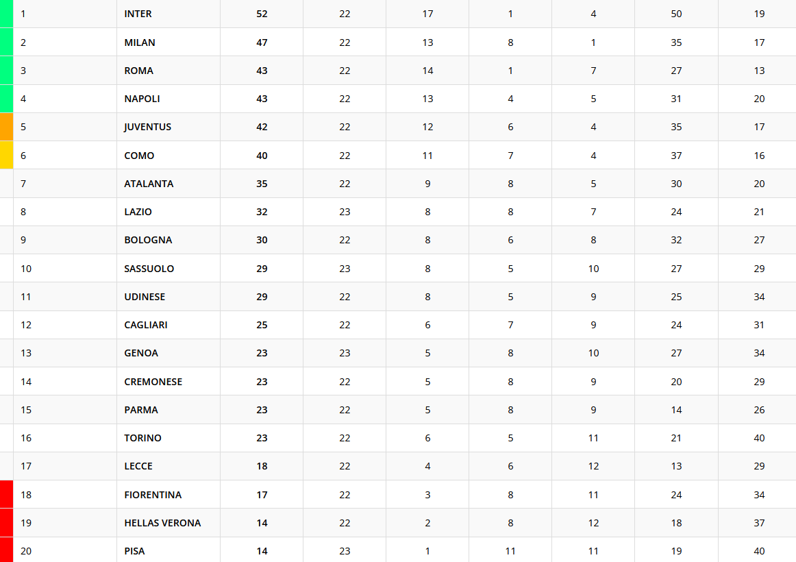 Il Sassuolo vince in casa del Pisa, nel match valido per la 23esima giornata di Serie A. La squadra di Grosso sale a quota 29 punti, agganciando l’Udinese. Il Pisa, invece, resta ultimo a quota 14 punti. Ecco la classifica della 23esima giornata.