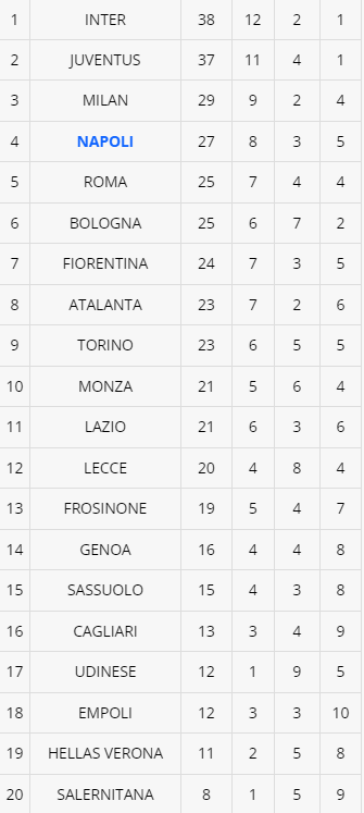 Basta un gol di Duvan Zapata a dare tre punti al Torino nel match contro l'Empoli. La squadra di Juric sale a quota 23 punti, agganciando l'Atalanta. L'Empoli resta a quota 12 punti con l'Udinese. Di seguito la classifica provvisoria.