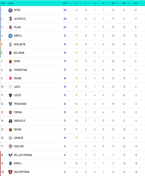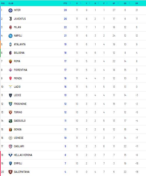 Con la vittoria in casa della Fiorentina, la Juventus allunga e resta in scia dell'Inter. I bianconeri sono a -2 dall'Inter capolista. La Fiorentina scende all'ottavo posto.
