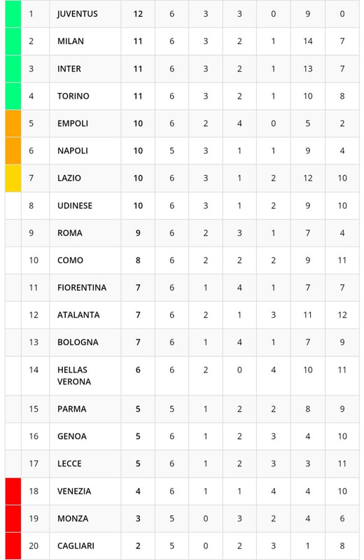 L'Empoli, dopo il pari nel derby toscano contro la Fiorentina, sale a quota 10 punti ed aggancia così anche il Napoli tra le altre. I viola, invece, si portano a 7 punti salendo in undicesima posizione. Ecco la classifica provvisoria della Serie A: