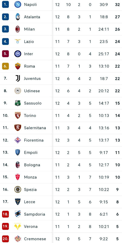 L'Udinese frena ancora, è solo 0-0 contro la Cremonese. La Fiorentina vince contro lo Spezia e aggancia momentaneamente la Salernitana a quota 13 punti. Di seguito la classifica aggiornata.