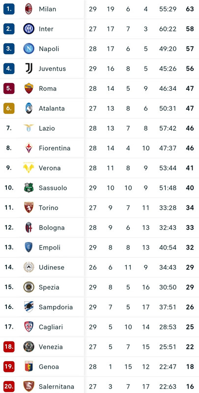 La Fiorentina, dopo il successo per 1-0 contro il Bologna, sale a quota 46 punti e si porta a -1 dal sesto posto occupato al momento dall'Atalanta. Il Bologna, invece, resta fermo a quota 33 punti e resta ancorato al dodicesimo posto. Questa la classifica provvisoria della Serie A:
