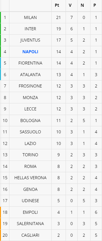 La Lazio vince nel finale contro l'Atalanta all'Olimpico e aggancia il Sassuolo a quota 10 punti. Successo del Frosinone sull'Hellas Verona: la squadra di Eusebio Di Francesco si porta a quota 12 punti. Di seguito la classifica provvisoria.