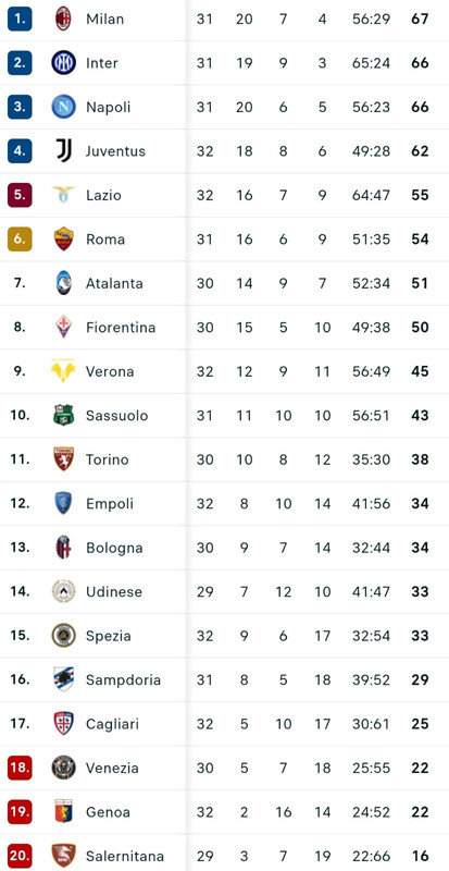 La Lazio, grazie al successo per 1-4 sul campo del Genoa, sale a quota 55 punti e supera momentaneamente la Roma al quinto posto. I rossoblù, invece, restano fermi a quota 22 punti, a -3 dalla salvezza. Ecco la classifica provvisoria della Serie A: