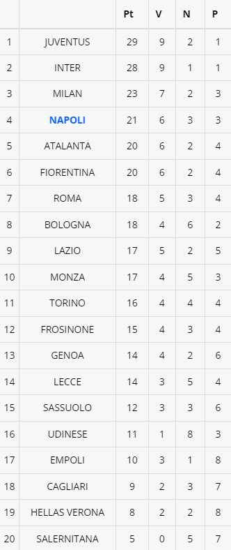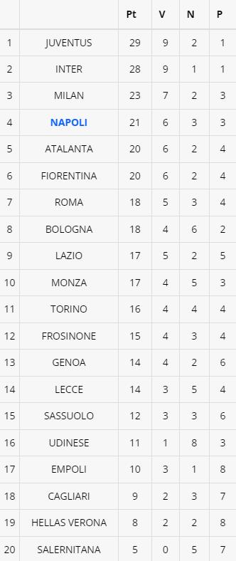 Termina in parità il derby della Capitale tra Lazio e Roma. Un punto a testa che porta i giallorossi ad agganciare il Bologna a quota 18 punti e i biancocelesti a raggiungere il Monza a quota 17 punti. Di seguito la classifica provvisoria.