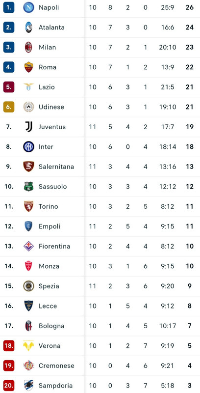 La Salernitana, grazie al successo contro lo Spezia sale a quota 13 punti e si porta al nono posto. I liguri invece, restano fermi a quota 9 punti e restano ancorati al quindicesimo posto. Ecco la classifica provvisoria della Serie A: