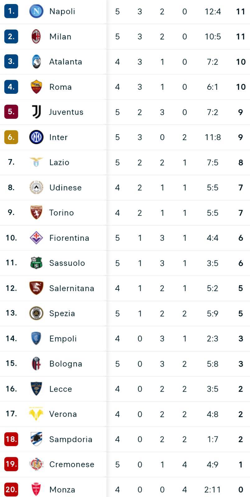 Pari tra Spezia e Bologna nella sfida delle 15 al Picco. Le due squadre non si fanno male e portano a casa un punto a testa. La squadra di Mihajlovic è 15esima a quota 3 punti. lo Spezia aggancia momentaneamente la Salernitana a quota 5 punti. Di seguito la classifica aggiornata.