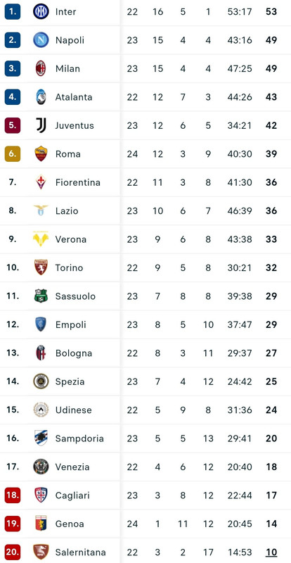 Solo un punto per Roma e Genoa dopo il pari per 0-0 maturato all'Olimpico nel primo match della 24esima giornata del campionato di Serie A. I giallorossi restano così ancorati al sesto posto a quota 39 punti, mentre i rossoblù ottengono un buon punto in chiave salvezza salendo a quota 14 punti, a -4 dal Venezia quartultimo. Questa la classifica provvisoria del campionato: