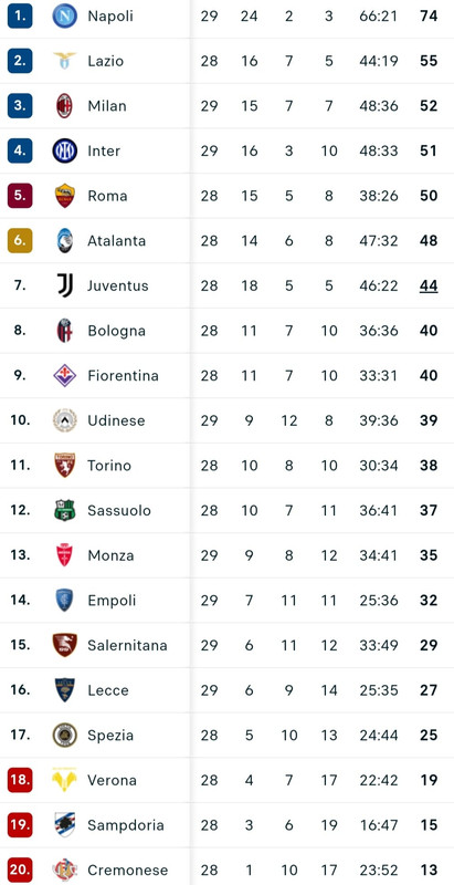Udinese e Monza non vanno oltre il pareggio nel match della Dacia Arena. I friulani salgono così a quota 39 punti e restano al 10° posto, i brianzoli si portano a quota 35 punti restando in 13esima posizione. Ecco la classifica provvisoria della Serie A: