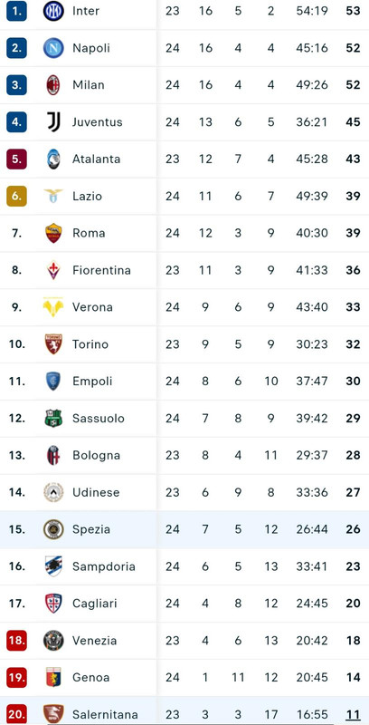 Pari nel posticipo del lunedi tra Salernitana e Spezia, con il match che è terminato 2-2. Un punto a testa in classifica per le squadre di Colantuono e Thiago Motta. Di seguito la classifica.