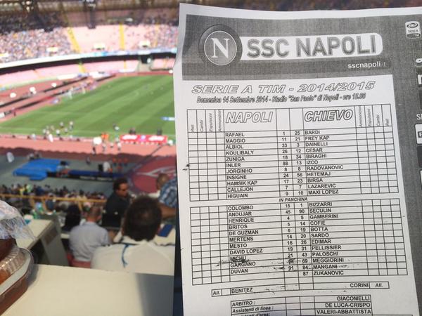 "#NapoliChievo le formazioni ufficiali dal San Paolo #ForzaNapoliSempre", ecco una foto pubblicata da "Napoli Magazine" su Twitter.