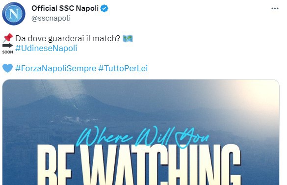 "Da dove guarderai il match?", scrive la SSC Napoli su Twitter a poche ore dal match della 33esima giornata di Serie A contro la Udinese.