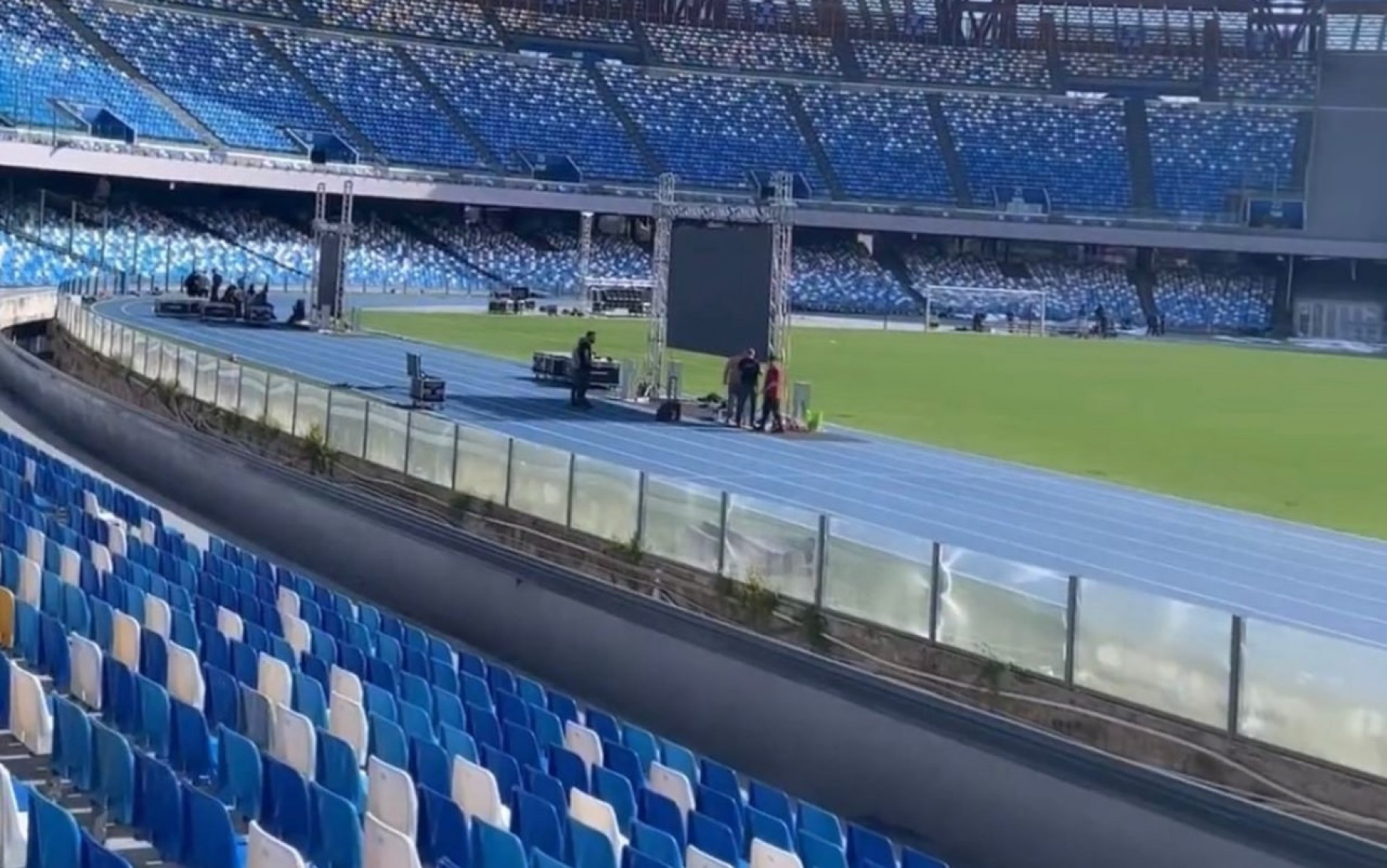 "Udinese-Napoli, lavori in corso al Maradona", scrive su Twitter il giornalista Carlo Alvino pubblicando un video in cui mostra l'allestimento dei maxischermi per la visione del match della Dacia Arena.