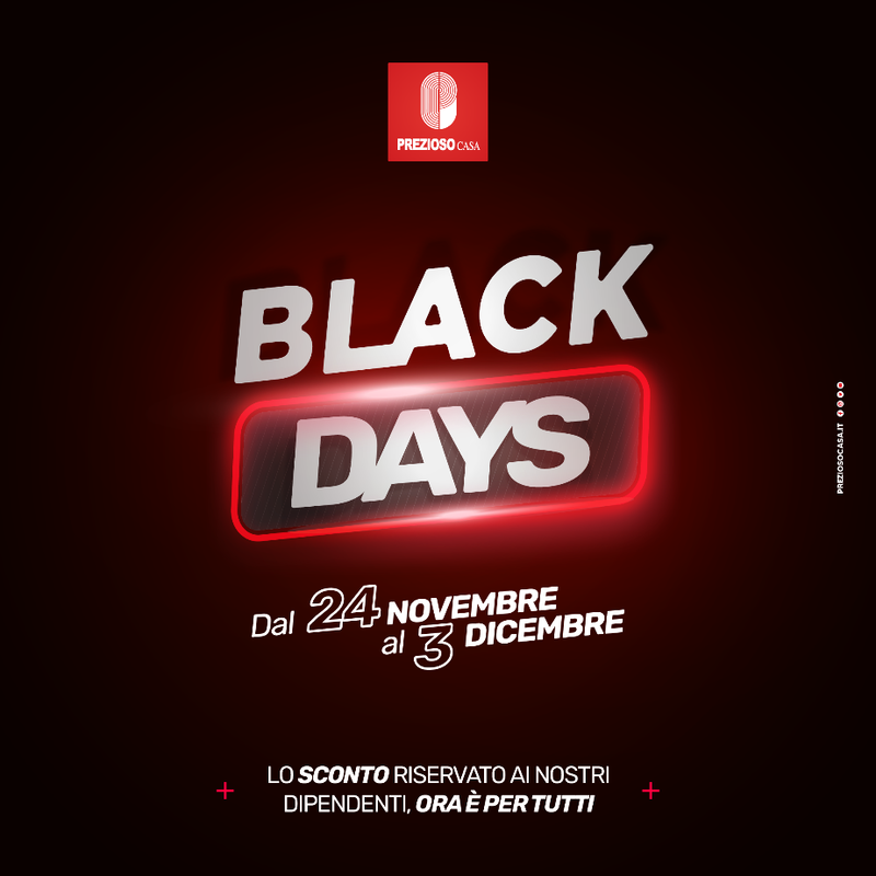 Si può riassumere con questo gioco di parole la nuova campagna promozionale di Prezioso Casa che, dal 24 novembre al 3 dicembre prossimo, si appresta ad ospitare i black days. Dieci giorni durante i quali, nei punti vendita di Avellino, Castel Volturno e Salerno saranno riservati ai clienti gli stessi sconti previsti per i dipendenti.