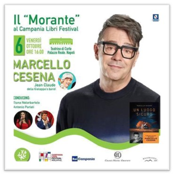 Coinvolgente e intensa la quarta intervista che Il Premio Elsa Morante terrà nell’ambito del Campania Libri Festival. A discutere con il direttore del Morante Tiuna Notarbartolo e con il direttore del Centro Produzioni Rai di Napoli Antonio Parlati, il comico Marcello Cesena, per tutti gli amanti della comicità conosciuto come Jean Claude della Gialappa’s band.