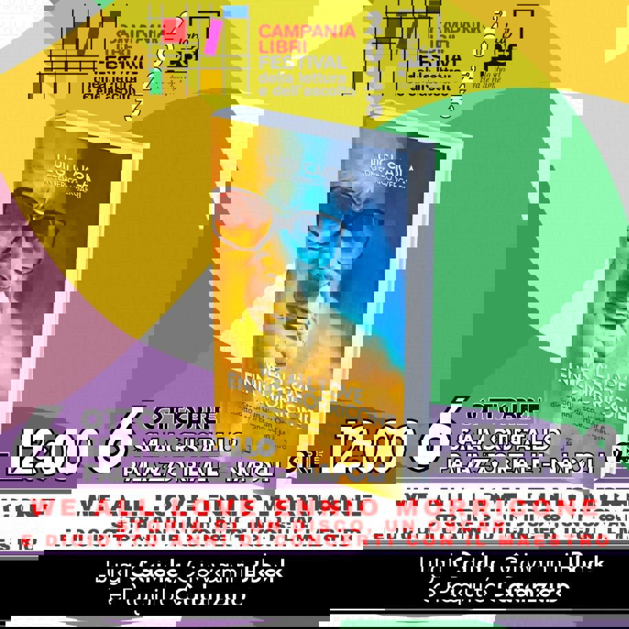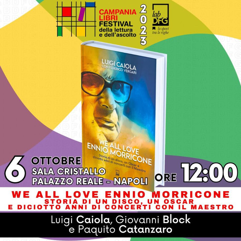 Il 6 ottobre ore 12 presso la Sala Cristallo del Palazzo Reale di Napoli nell'ambito del Festival Campania Libri, verrà presentato “We all love Ennio Morricone”, libro edito dalla Lab DFG in cui Luigi Caiola, con il giornalista e scrittore Federico Vergariracconta i 18 anni da manager del Maestro. A moderare l’incontro sarà il giornalista e scrittore Paquito Catanzaro e parteciperà all’evento il cantautore Giovanni Block.