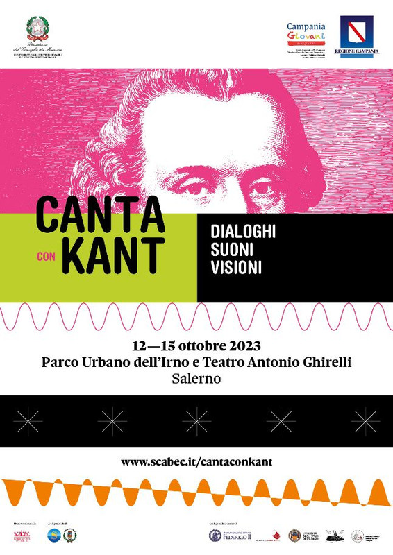Programmato e finanziato dalla Regione Campania (fondi Regione Campania e Dipartimento per le politiche giovanili e il servizio civile universale) attraverso la Scabec, società campana per la promozione e la valorizzazione dei beni culturali, “Canta con Kant. Dialoghi, suoni, visioni” è il festival in programma dal 12 al 15 ottobre a Salerno. Concerti, dibattiti filosofici, riflessioni, contrappunti attoriali e interazioni con il pubblico animeranno la città all’interno del suo polmone verde. Nel Parco urbano dell’Irno si terranno infatti i concerti serali di Carmen Consoli feat. Marina Rei (13 ottobre), Daniele Silvestri (14 ottobre), BigMama e La Maschera (15 ottobre). Consoli, Silvestri e BigMama saranno intervistati in un’apposita Agorà da Gianni Simioli. Il Teatro “Antonio Ghirelli” ospiterà invece 15 talk filosofici con protagonisti Francesco Paolo Adorno, Maurizio Bettini, Valentina Carnelutti, Gino Castaldo, Nello Cristianini, Umberto Curi, Tiziana D’Angelo, Massimo De Santo, Pietro Del Soldà, Adolfo Fattori, Giuseppe Gaeta, Ilaria Gaspari, Antonio Gnoli, Domenico Iannacone, Matteo Nucci, Riccardo Pozzo, Alfonso Santaniello, Domenico Spinelli, Emidio Spinelli, Carlotta Vagnoli, Massimiliano Valerii, Emanuele Zingale. Quattro le sezioni dei talk: Mito e Filosofia; Cicatrici, Tatuaggi e altri segni; Solo vivendo: memoria dei corpi, immaginazione del futuro; Per uscire dalla minorità: Kant e non solo.