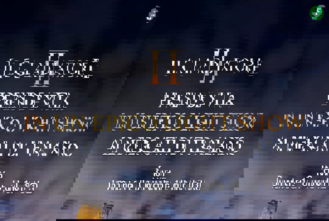 In vista dell’attesissima uscita nelle sale italiane de "Il Gladiatore II", prevista per il 14 novembre 2024 e distribuito da Eagle Pictures, il cuore di Roma si prepara a vivere un evento straordinario: