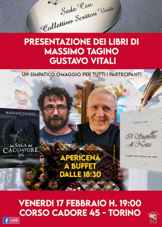 L’appuntamento è quindi presso la sede del Collettivo Scrittori Uniti a Torino in corso Cadore 45 alle ore 18.00. Conduce lo scrittore e presidente Claudio Secci.
